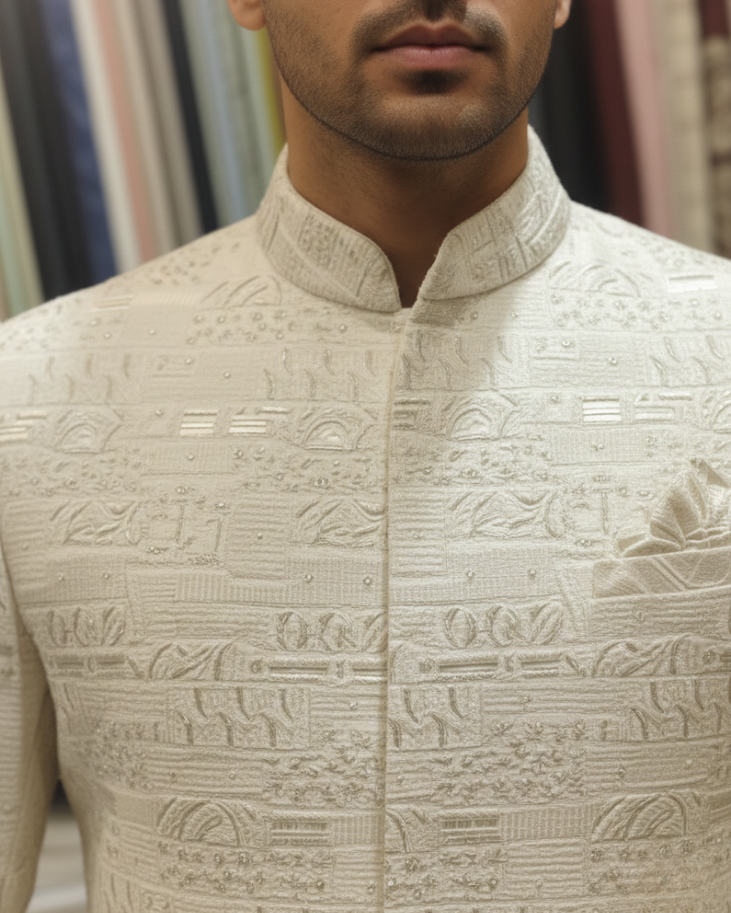 Ivory Hand-Embroidered Sherwani